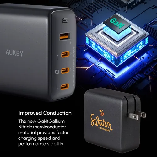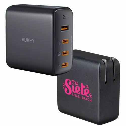 A 100W 4-Port PD wall charger with GaN power tech is powerful enough to charge laptops and other large-capacity devices. Supports both PD and Samsung super-fast charging, as well as, charging up to 4 devices via the built-in 3 USB-C and 1 USB-A ports. Easily store and travel while on the go, with its foldable plug design.