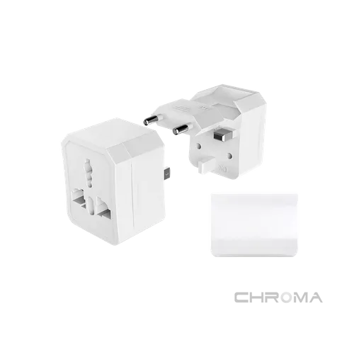 This colorful universal travel adapter covers more then 150 country's wall adapters. Includes a built in fuse protection. Perfect for everyone on the go. All stored in a nice clear case!