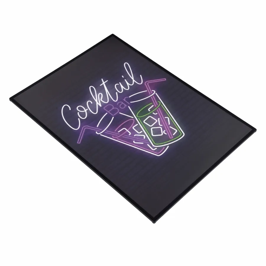 This slim aluminum-framed light box features a printed design illuminated by LED backlighting. With dark backgrounds and vibrant, neon-style artwork, it produces a glowing effect that closely mimics a traditional neon sign!