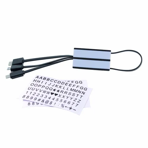 The Cinema Lightbox Cable multi charger is practical and perfect for sharing messages for any occasion. The light up message board is designed to resemble a retro mini cinema sign. Utilizing the included letter decals, you can easily personalize the lightbox with your own message. Built-in cables include: iPhone 5-pin, Micro USB, and Type-C. The connectors are compatible with a majority of the phones in the market, including Android® phones and iPhone® 5 and later models. Plus, it