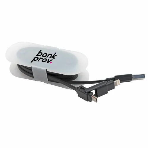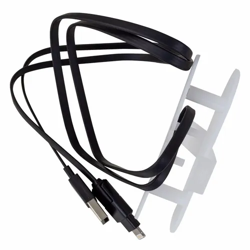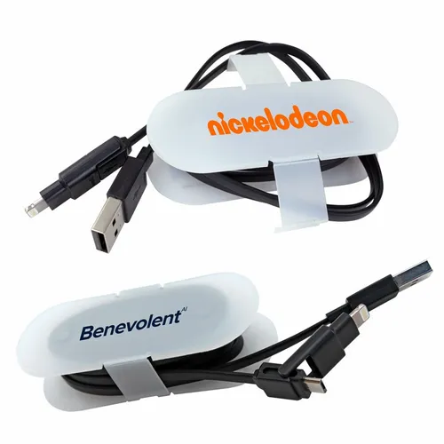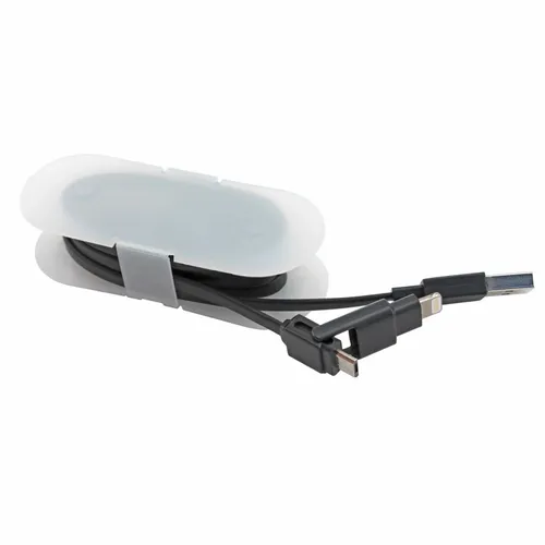 2-in-1 MFi Certified 8- pin Cable and Micro-USB with cord wrap container for easy portability.