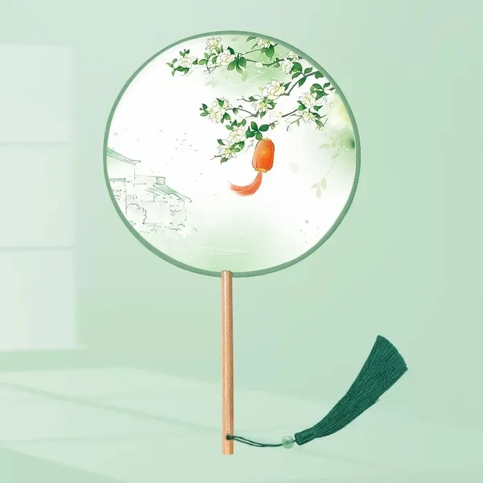 A custom silk hand fan is a beautifully crafted fan made from imitation silk with bamboo and wood handles, offering both durability and elegance. Available in three shapes—Round (8"), Petal (8"), and Haitang (8.5")—each fan is designed with a smooth, silky touch that blends modern simplicity with classical charm.