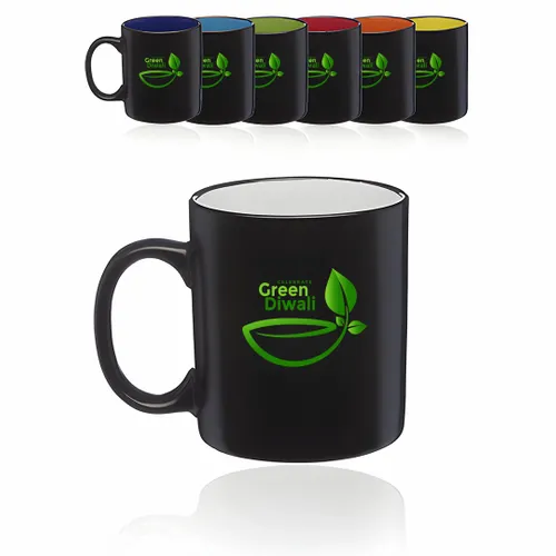 Introducing our exquisite Matte Bicolored Ceramic Coffee Mugs with a captivating twist of color on the interior. These 11 Oz, two-toned matte mugs combine style and subtlety to create a truly remarkable coffee-drinking experience. Crafted with meticulous attention to detail, the smooth molded ceramic composite ensures lasting durability and a luxurious tactile sensation. The alluring black matte finish on the exterior exudes sophistication, while the color interior adds a delightful pop of vibrancy. To further enhance your comfort, we've designed these mugs with an easy-to-hold C-curved handle, providing a secure grip and making every sip a pleasure. Whether you're starting your day with a rejuvenating cup of coffee or enjoying a serene moment with your favorite tea, these mugs are the epitome of elegance. Elevate your beverage indulgence with our captivating Coffee Mugs!