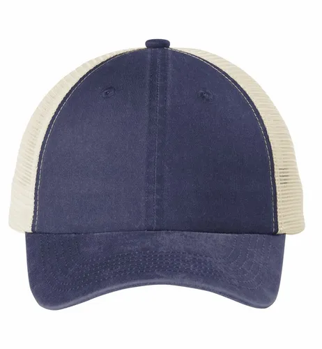 Fabric: 100% garment-washed cotton twill front panels and bill, 100% soft mesh polyester mid and back panels Structure: Unstructured Profile: Low Closure: 7-position adjustable snapback The garment-washing process infuses each garment with unique character. Please allow for slight color variation. Special consideration must also be taken when printing white ink on garment-washed cotton.