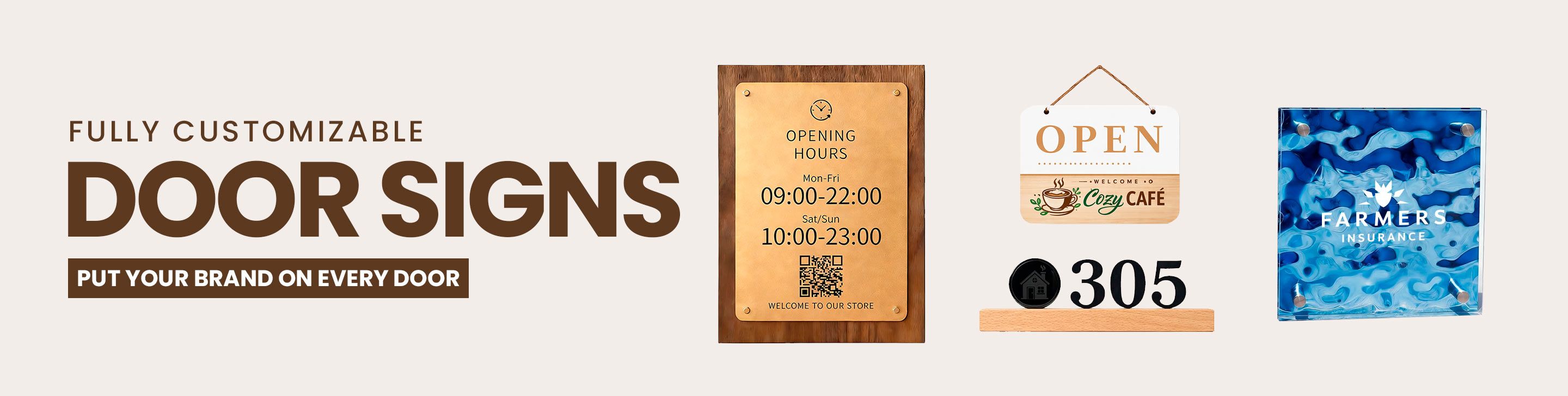 I chose the walnut and metal door sign for my studio and it looks beautiful. The combination of wood and metal gives it a premium feel, and the craftsmanship exceeded my expectations. The customization process was smooth, and the final product looked exactly like the preview. It adds a warm but modern touch to the space.
