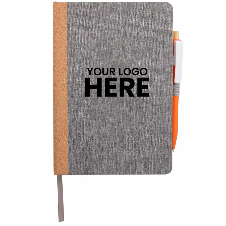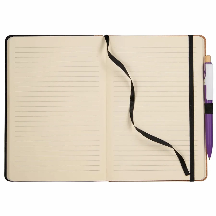 The 5.5 x 8.5 Recycled PET and Cork Bound Journal combines sustainable materials with a modern design, featuring a 50% recycled PET cover with a natural cork spine. Inside, it includes 80 sheets of recycled lined paper, a color-matching ribbon page marker, an elastic closure, and a convenient pen loop to keep your writing essentials organized. By choosing this journal, you’re making a positive impact on the environment through a partnership with 1% For The Planet, as a portion of each sale supports environmental nonprofits.
