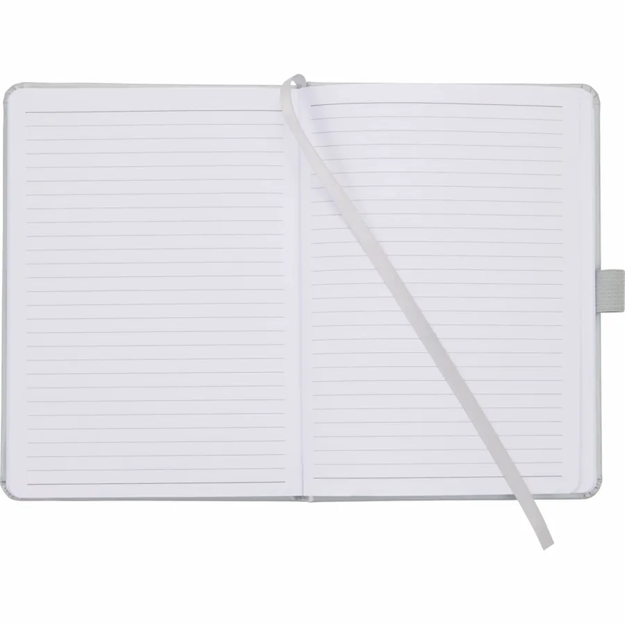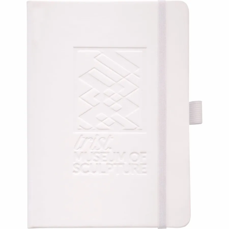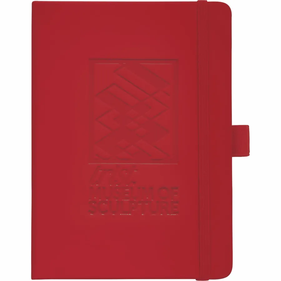 The 5 x 7 FSC Mix Vienna Hard Bound Journal is a soft touch, hard cover bound journal with built-in elastic closure. This custom notebook features a color-matching elastic pen loop and ribbon page marker. The 5 x 7 FSC Mix Vienna Hard Bound Journal includes 72 sheets of FSC Mix white lined paper.