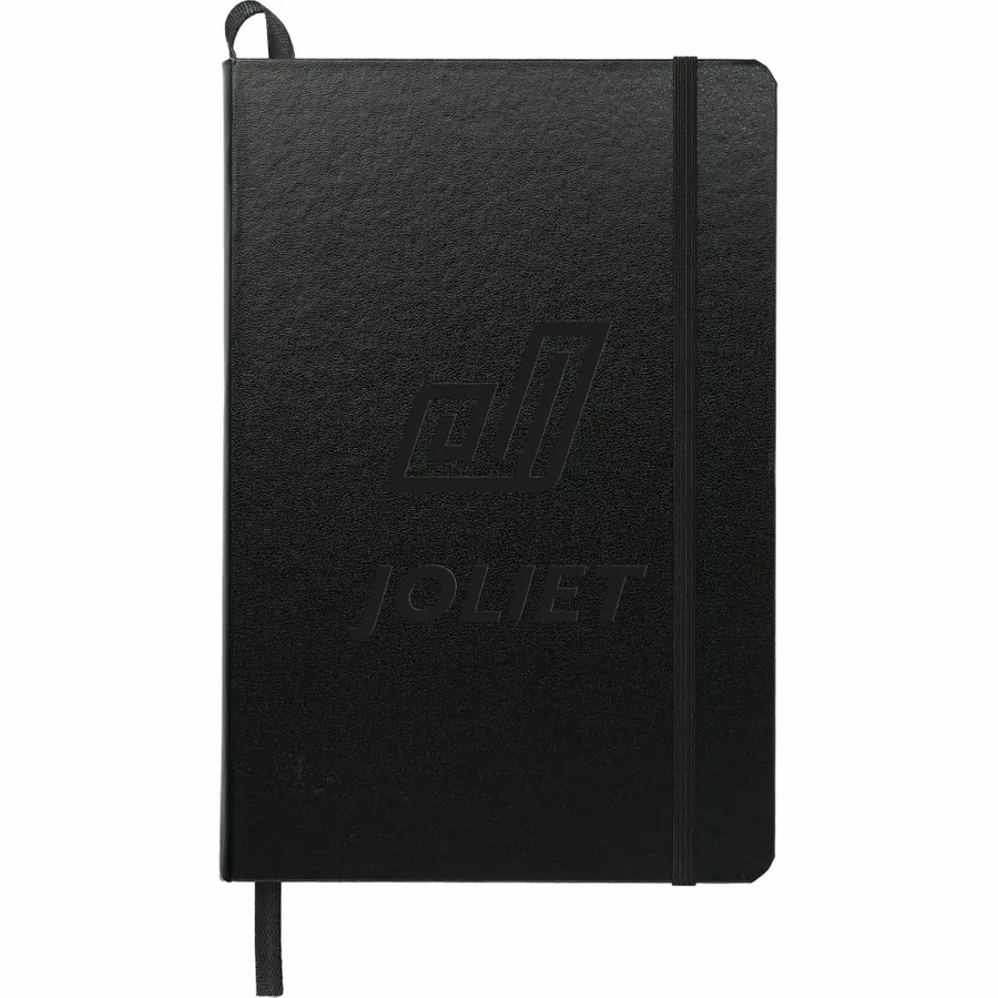 The 5.5 x 8.5 FSC Mix Ambassador Hardcover Bound Journal is a hard cover bound journal with 80 sheets of cream lined paper. The Journal features built-in elastic closure, ribbon page marker, and expandable accordion pocket.