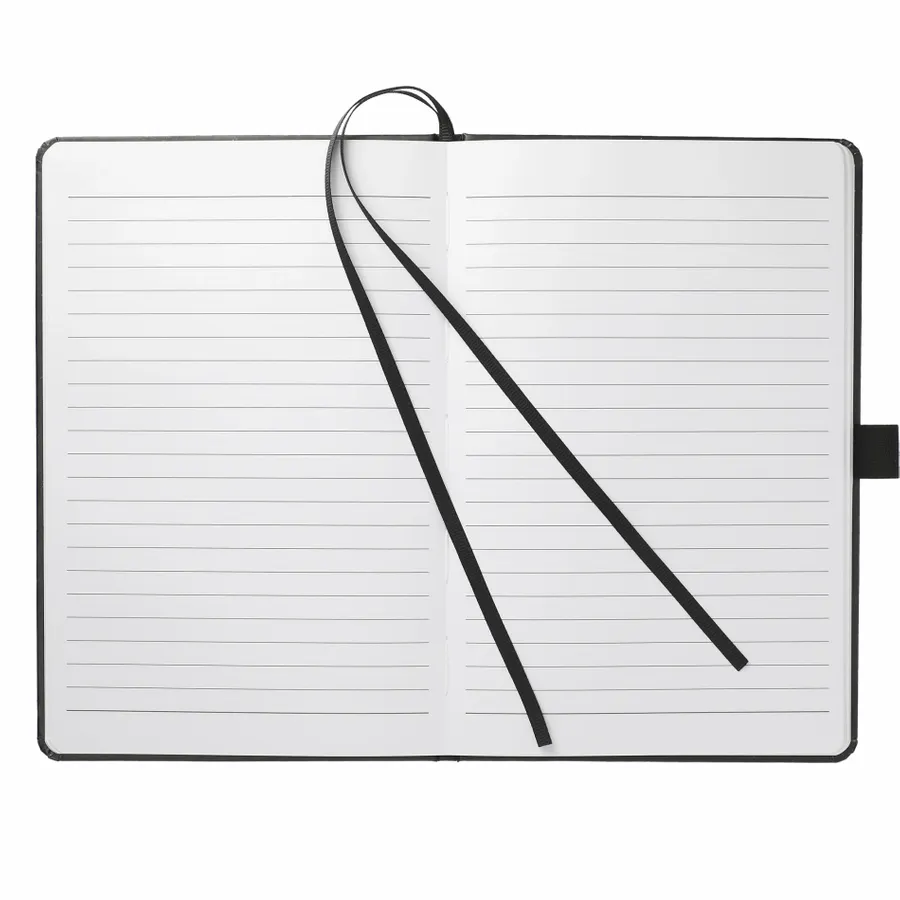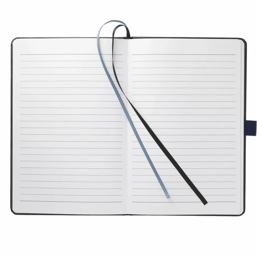 The 5.5 x 8.5 FSC Mix Bound Journal features a FSC-certified paper hard cover with 80 sheets of white FSC-certified, soy-based ink lined paper. Includes color-matching elastic closure, pen loop and ribbon page marker. Through a partnership with 1% For The Planet, one percent of sales of all EcoSmart products are donated to environmental nonprofits. Digital Inkjet not available on Silver color.