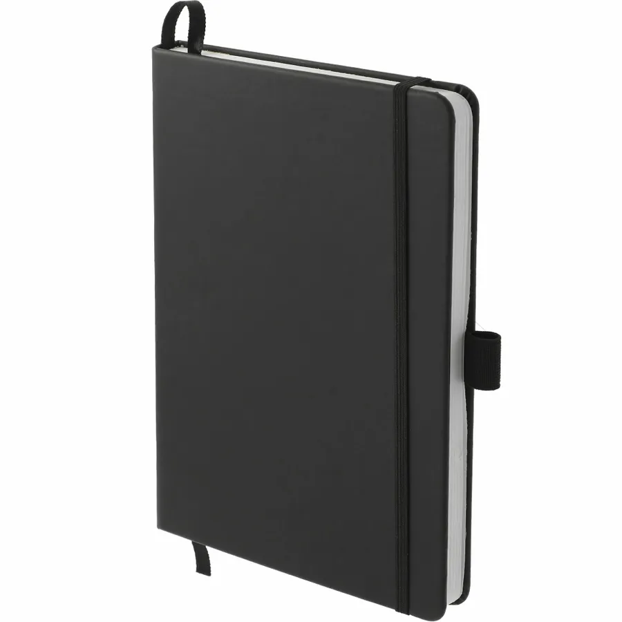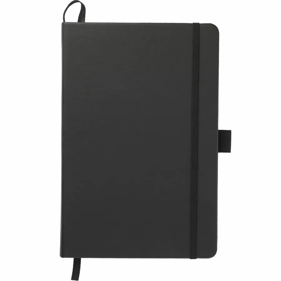 The 5.5” x 8.5” FSC Mix Mela Bound Journal features a uniquely crafted hard cover with 39% of apple components. Color-matching elastic closure, pen loop and ribbon page marker. Includes 80 sheets of FSC Mix white lined recycled paper and back document pocket. Through a partnership with 1% For The Planet, one percent of sales of all EcoSmart products will be donated to environmental nonprofits.