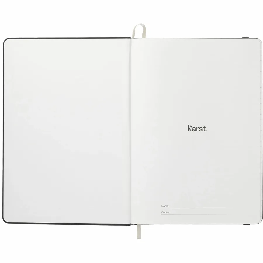 The Karst 5.5 x 8.5 Stone Bound Notebook is made for creatives by creatives. Featuring a water-resistant hard cover and pages, ribbon page marker and back document pocket. The smooth texture of the 72 sheets of white stone lined pages and flat-lay binding provide ample comfort and writing space for your notes and ideas. This stone paper holds a C2C Cradle to Cradle Silver Certification. That means if you do have to dispose of your Karst notebook; it is recyclable. Due to the nature of the material, there may be color variances on the cover.