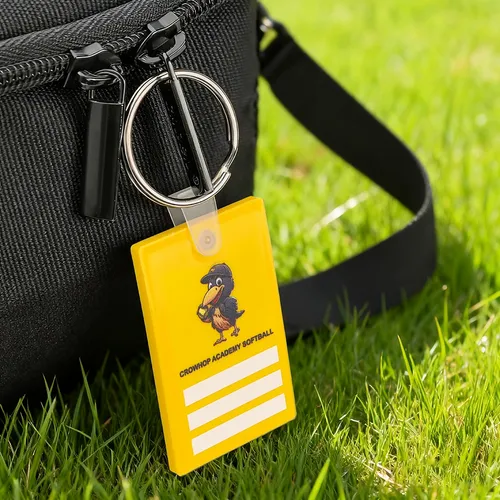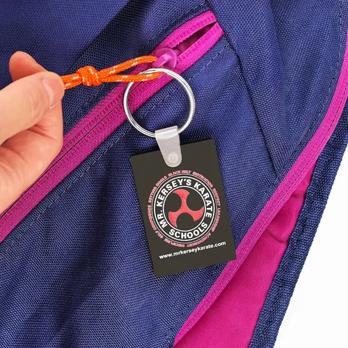 Our luggage tag keychains can be customized and are made of 2.16" x 1.38" soft plastic and a 2cm diameter metal ring. Reasonable size for easy carrying, is light and handy and has good tags for your stuff so you can easily find it. It's convenient and practical, suit for a home, office, keychain, a bunch of keys, pet ID tag, luggage tag, rental management company, storage facility, and more.