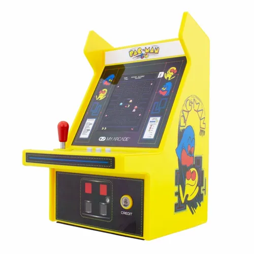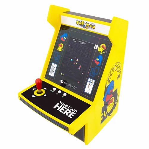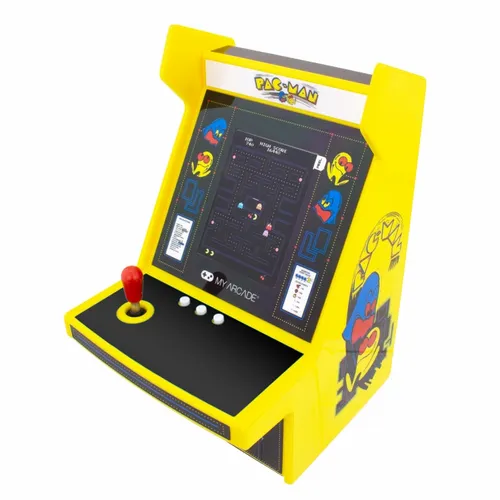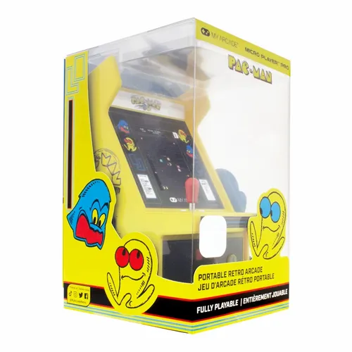 2.75" full-color back-lit display, featuring eye-catching artwork inspired by the nostalgic PAC-MAN arcade cabinet! Play your favorite game on the go and relive those classic arcade moments anytime, anywhere. Whether you power it with 4 AA (not included) batteries for portable fun or connect it with a Type-C cable (not included) cable for stationary play, this device is a must-have for any game room, office, or display case. Bring a touch of retro gaming magic to your space.