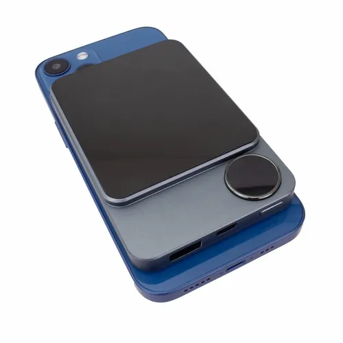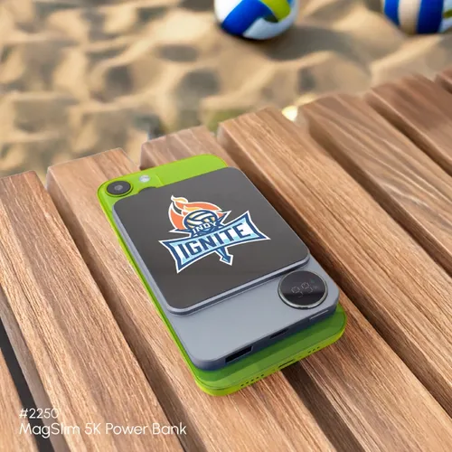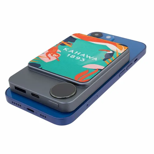 A slim and elegant power bank with a 5K charge, a partial metallic exterior, and an LED power-level display. Its modern style matches and compliments newer phone designs. The ports include a Type-C PD input and output and a USB port.