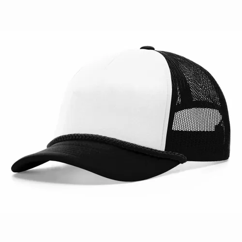 Front: 53% Polyester/47% Cotton Back: 100% Polyester Foam Twill Fabric,Trucker Mesh Structured, Five-panel, Low Pro Profile with Braid, 3″ Crown Pre-curved Bill Adjustable Snapback Closure