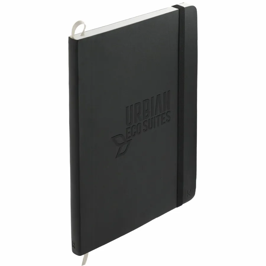 The Karst 5.5 x 8.5 Stone Soft Bound Notebook is made from high-quality, sustainable, recyclable stone paper with a flexible vegan leather cover. With an expandable back pocket, divider ribbon or bookmark, elastic band and lay-flat binding. This unique, eco-friendly notebook is acid-free, bright white, and waterproof with a premium look and feel. The smooth texture of the 72 sheets of white stone lined pages and flat-lay binding provide ample comfort and writing space for your notes and ideas. This stone paper holds a C2C Cradle to Cradle Silver Certification. That means if you do have to dispose of your Karst notebook; it is recyclable.