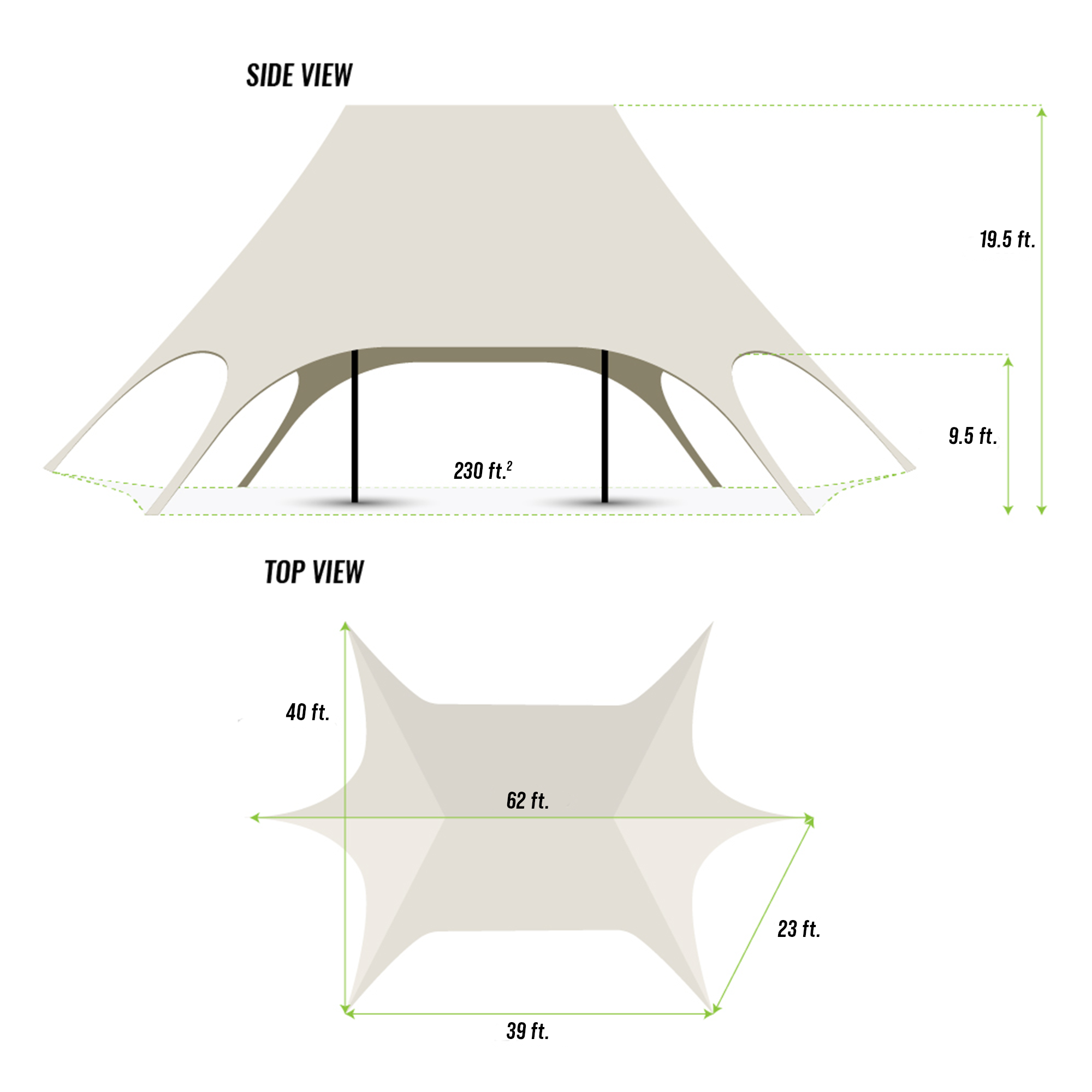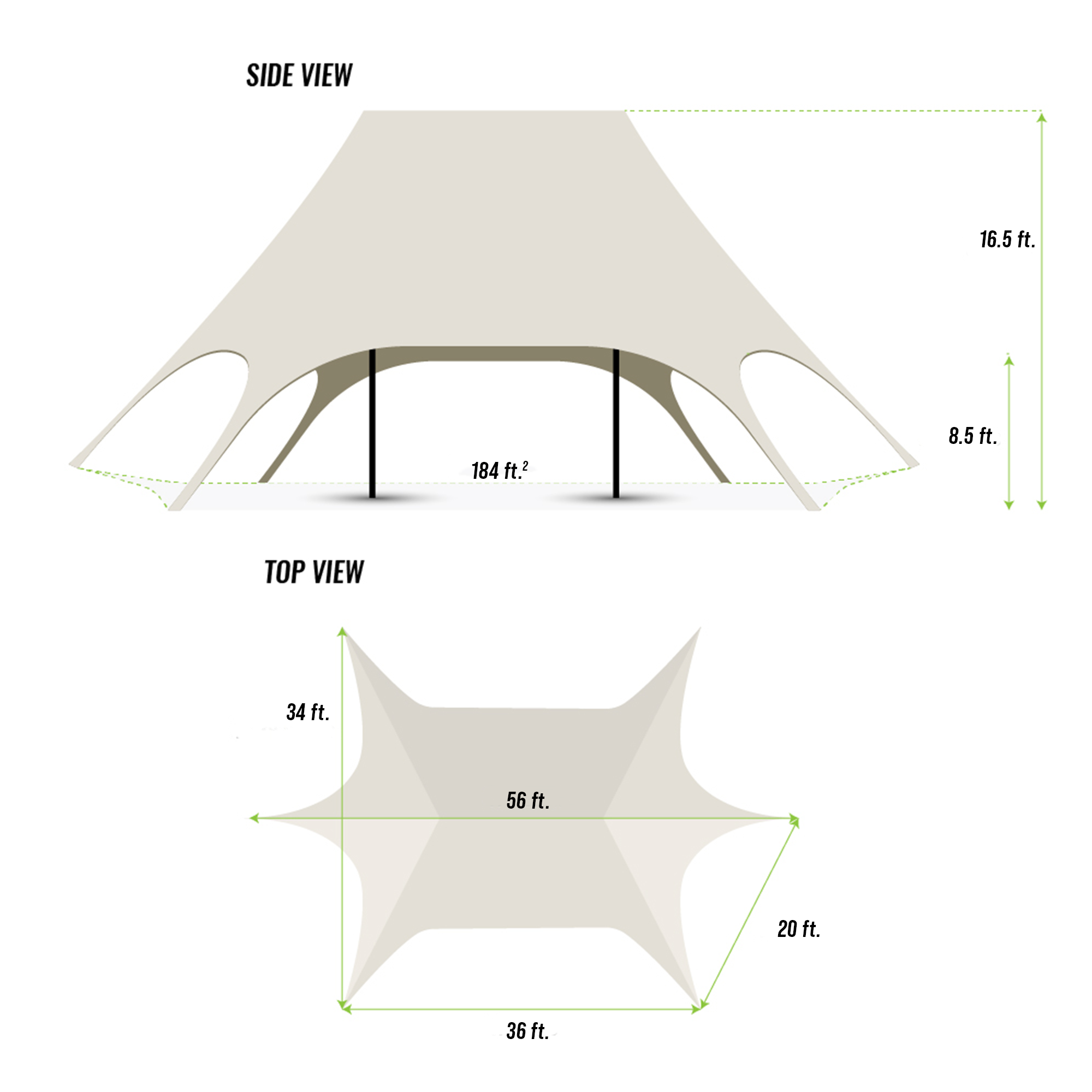 • Elevate your outdoor presence with the immense and visually striking Double Pole Star Tent. Its unique, twin-peak star design creates a vast, open-air canopy, offering an exceptional solution for large-scale events, festivals, corporate gatherings, and promotional campaigns. Engineered for stability and designed to impress, this tent provides extensive shade and a high-impact promotional space, ensuring your brand captures attention and your guests stay comfortable. The expansive, dual-pole structure is perfect for covering large areas for everything from weddings to machinery displays.